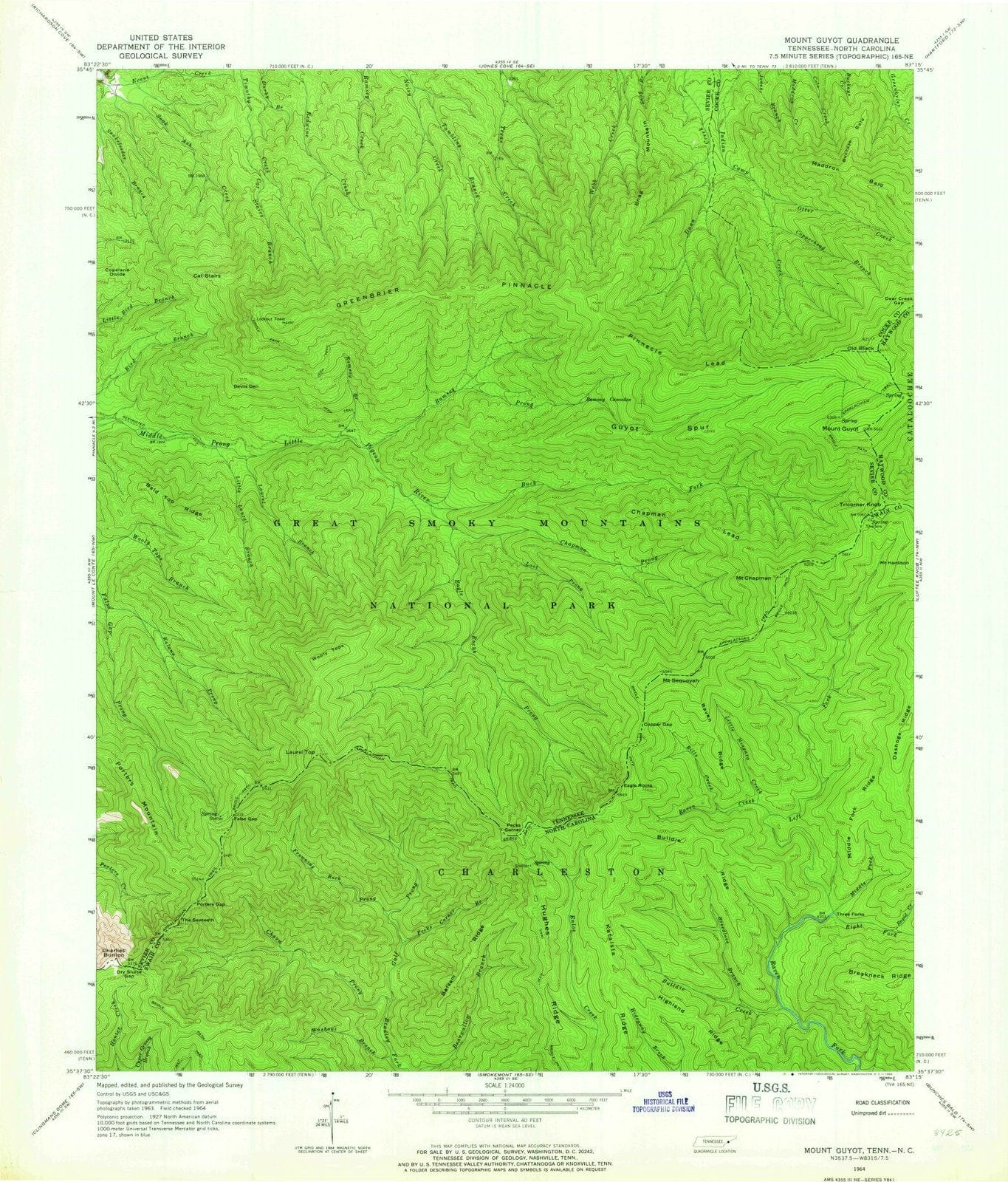 1964 Mount Guyot, TN - Tennessee - USGS Topographic Map