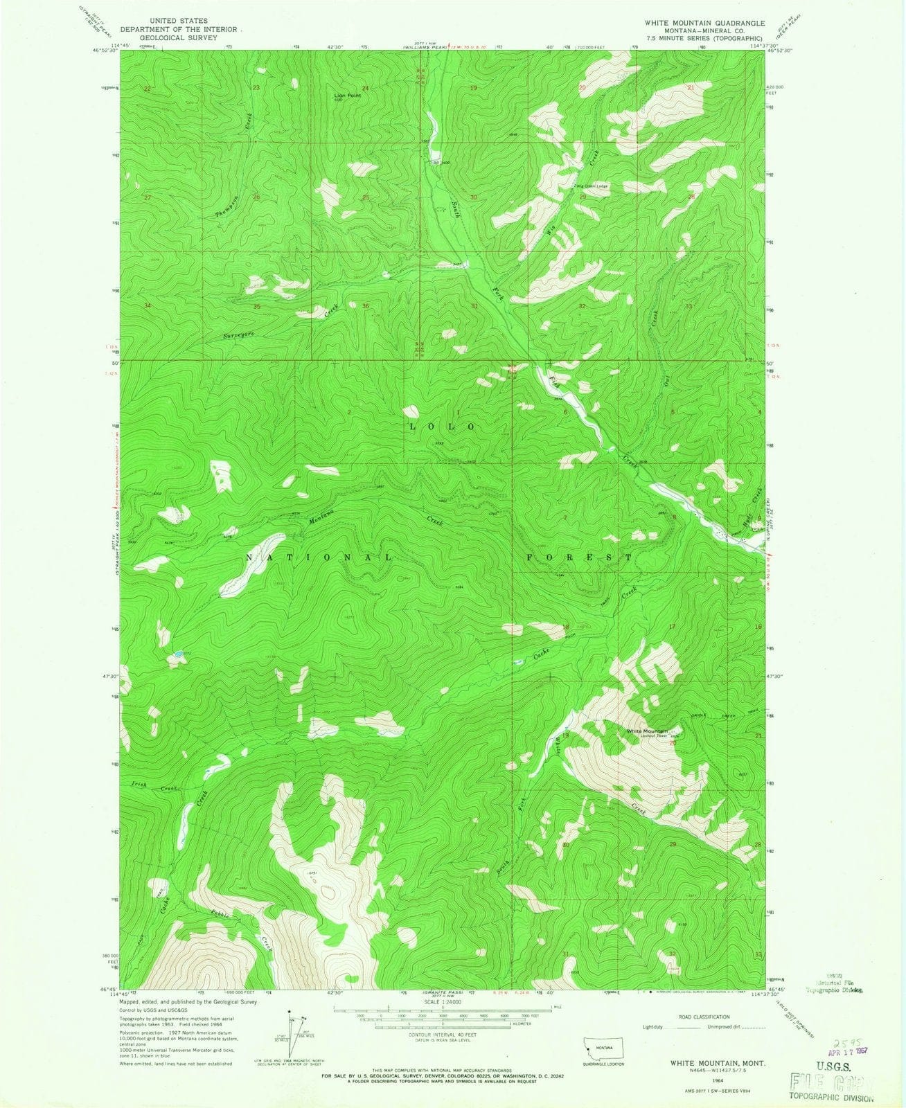 1964 White Mountain, MT - Montana - USGS Topographic Map