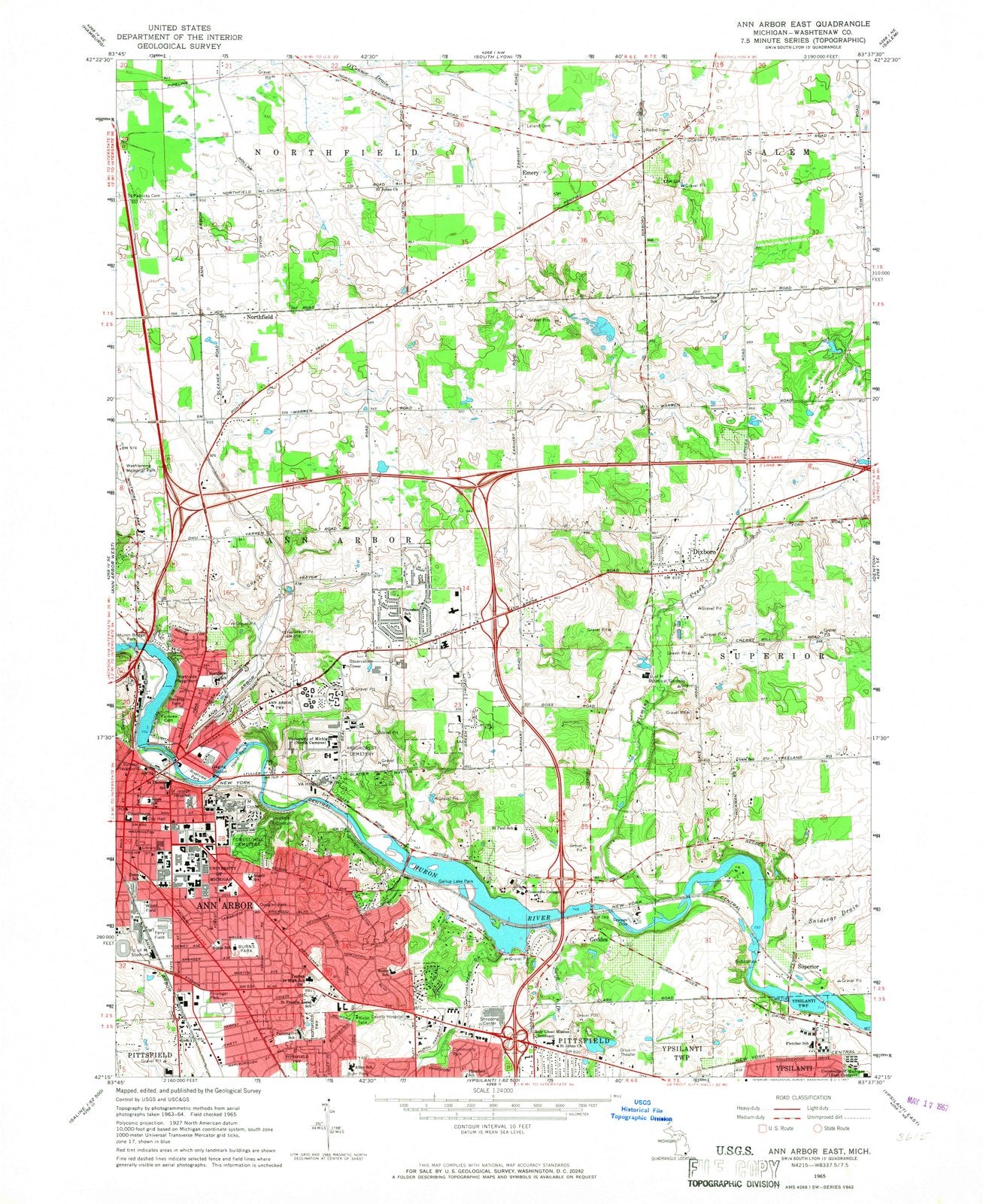 1965 Ann Arbor East, MI - Michigan - USGS Topographic Map