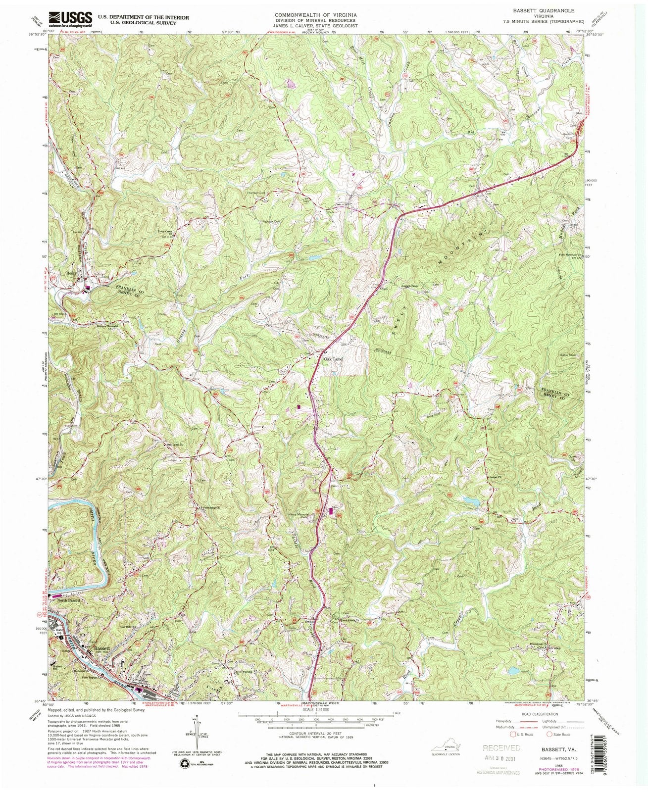 • 1965 Bassett, VA - Virginia - USGS Topographic Map