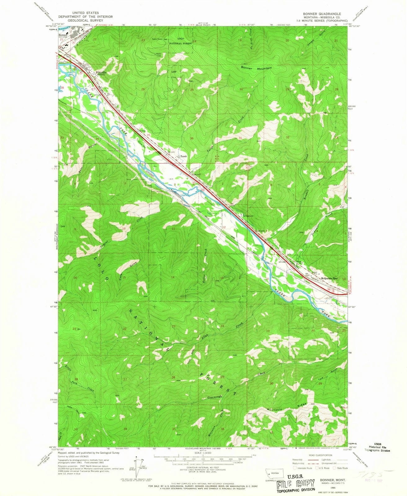 1965 Bonner, MT - Montana - USGS Topographic Map