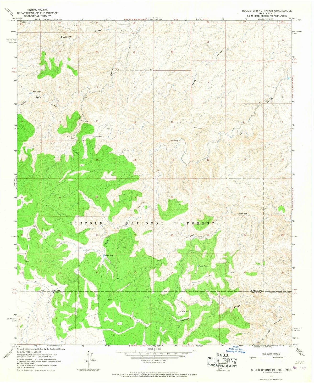 1965 Bullis Spring Ranch, NM - New Mexico - USGS Topographic Map