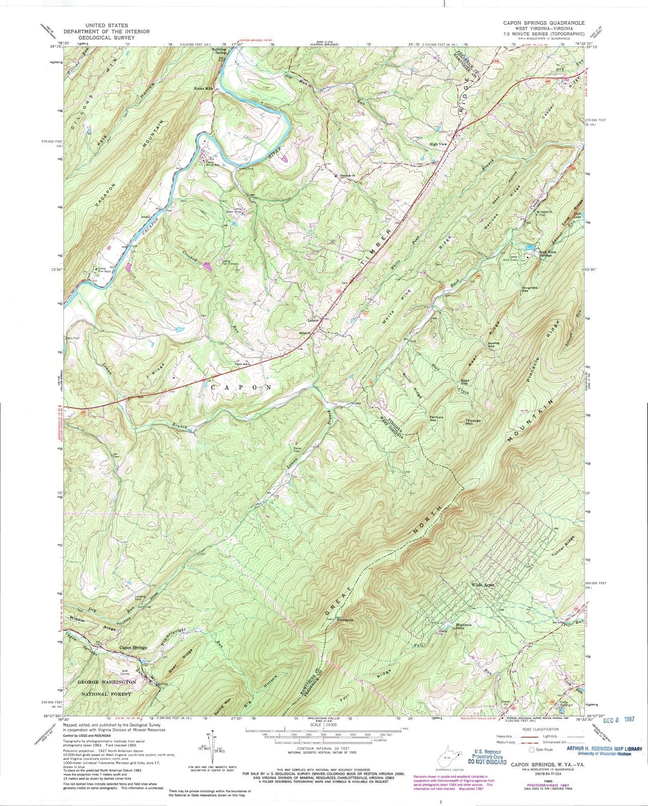 1965 Capon Springs, WV - West Virginia - USGS Topographic Map
