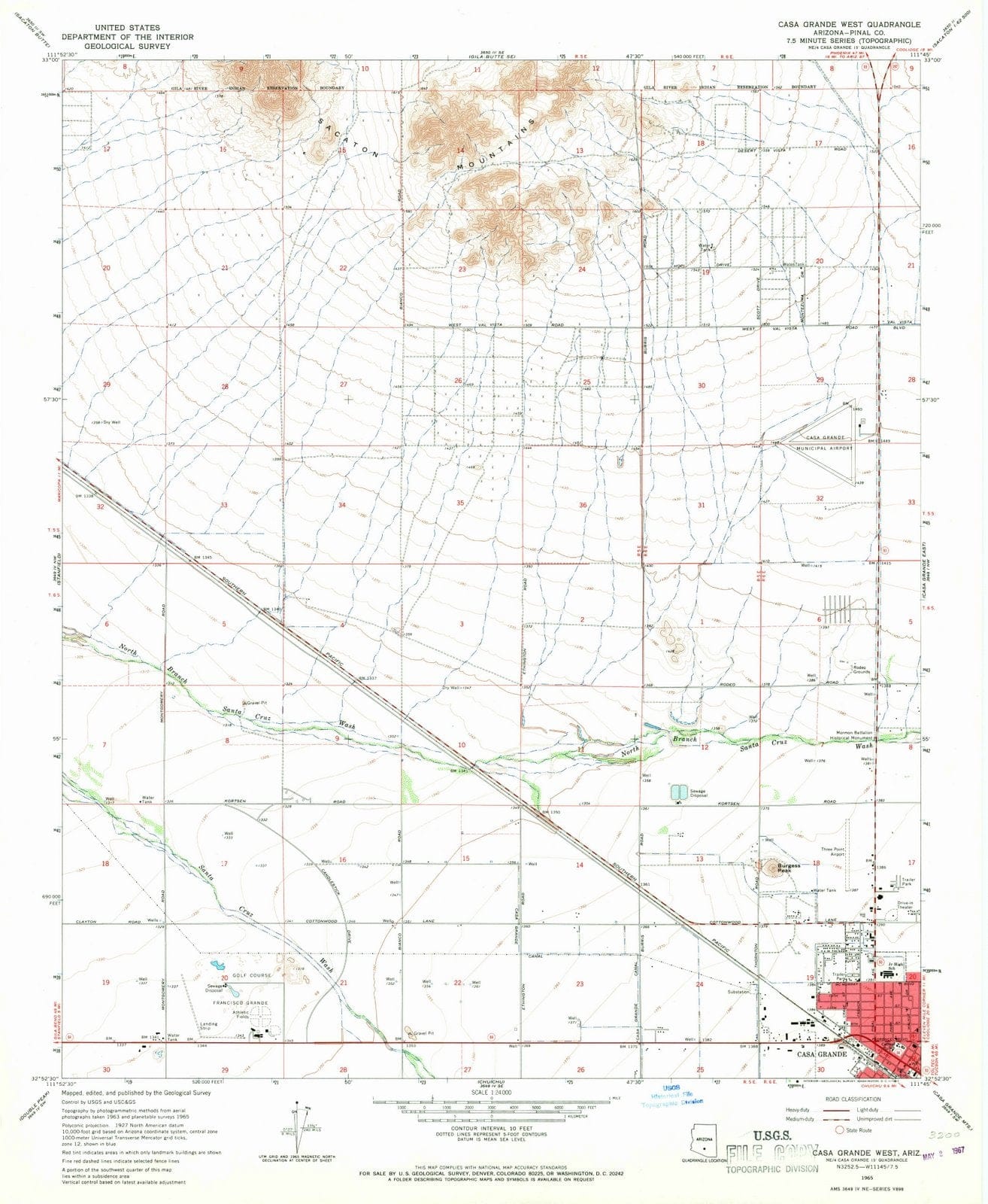 1965 Casa Grande West, AZ - Arizona - USGS Topographic Map