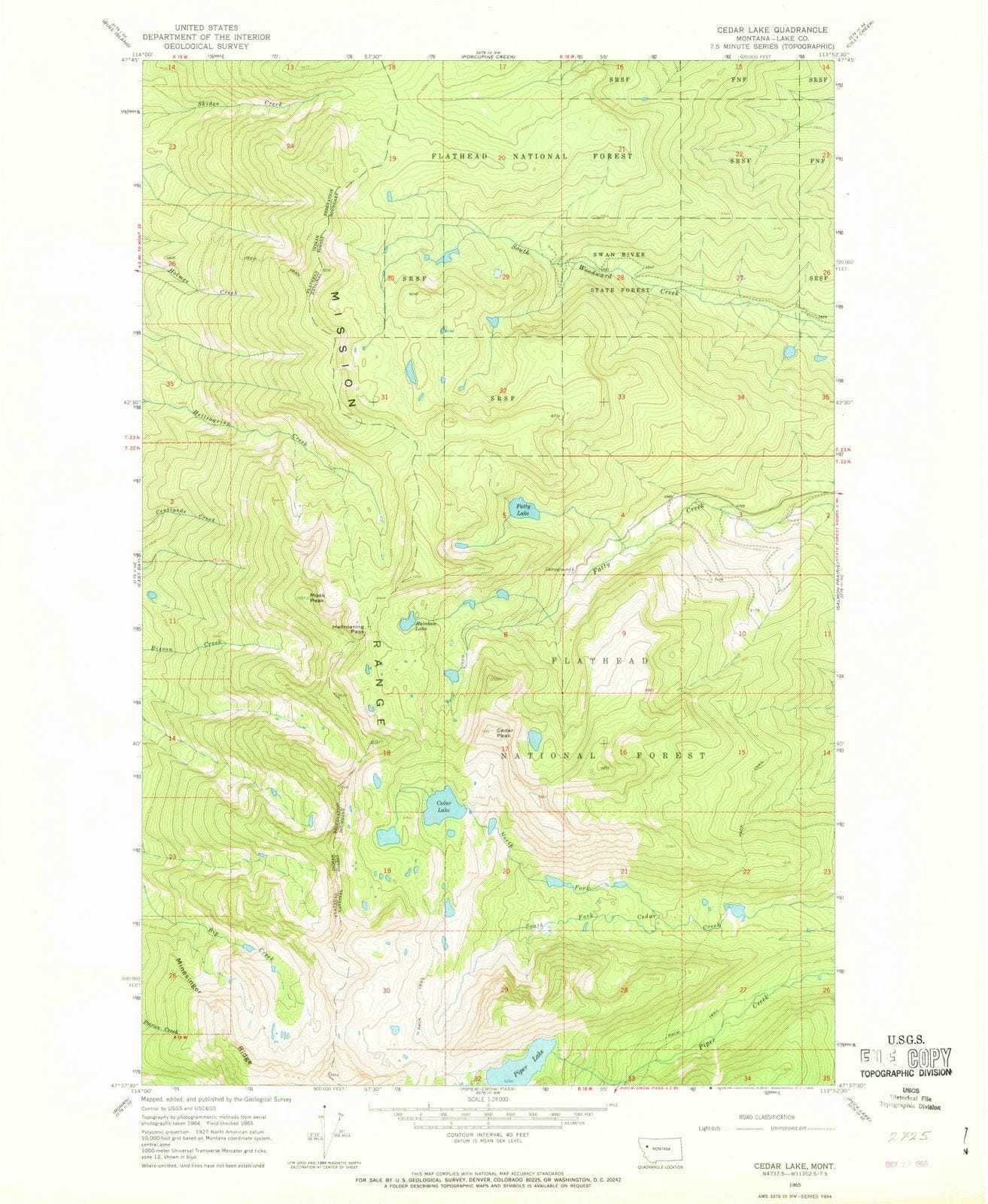 1965 Cedar Lake, MT - Montana - USGS Topographic Map