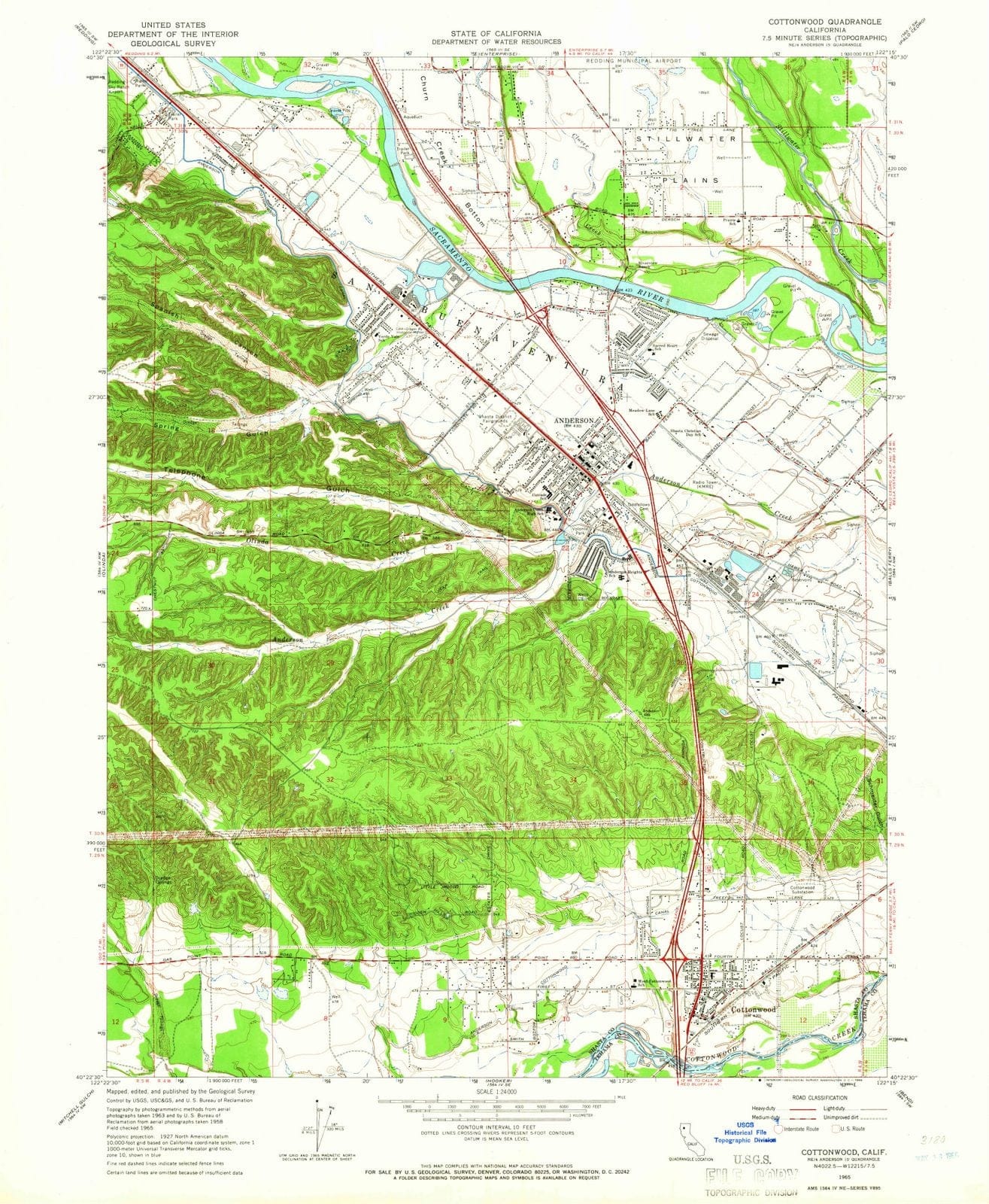 • 1965 Cottonwood, CA - California - USGS Topographic Map