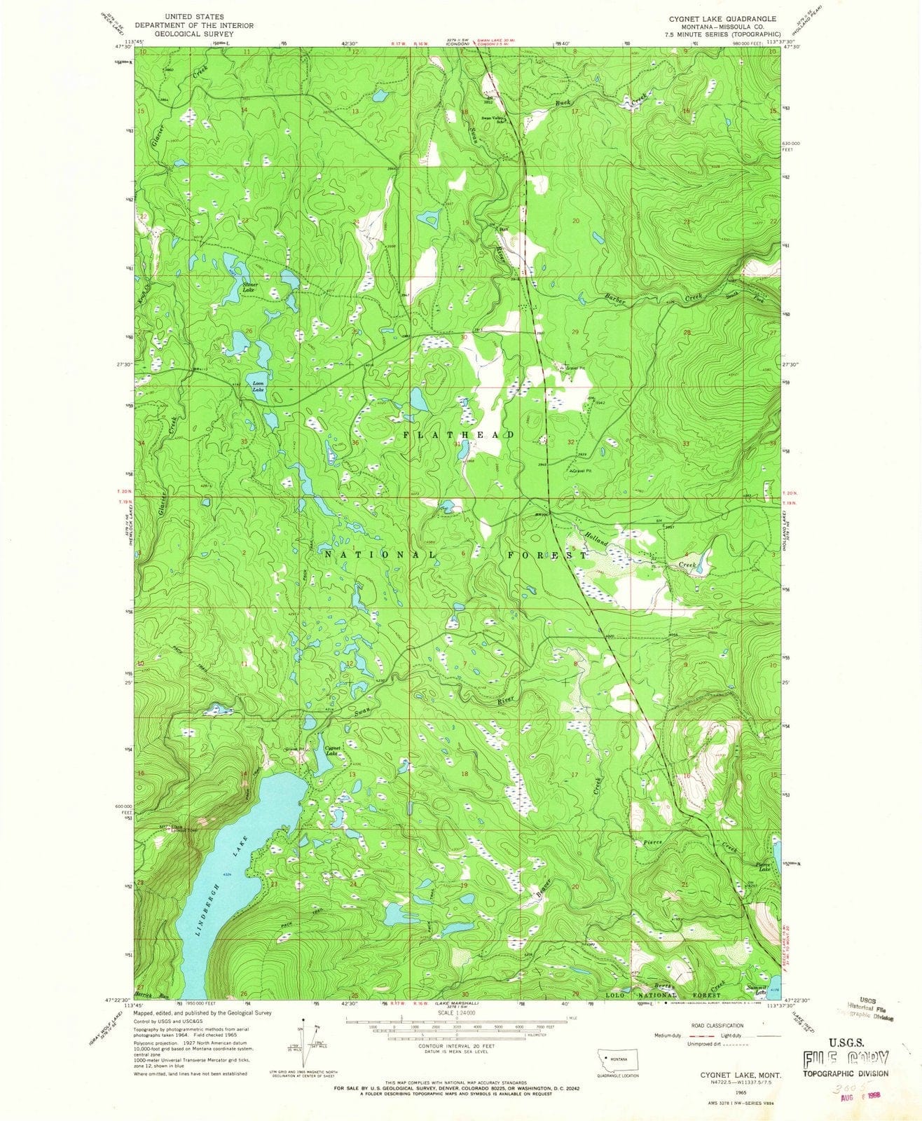 1965 Cygnet Lake, MT - Montana - USGS Topographic Map