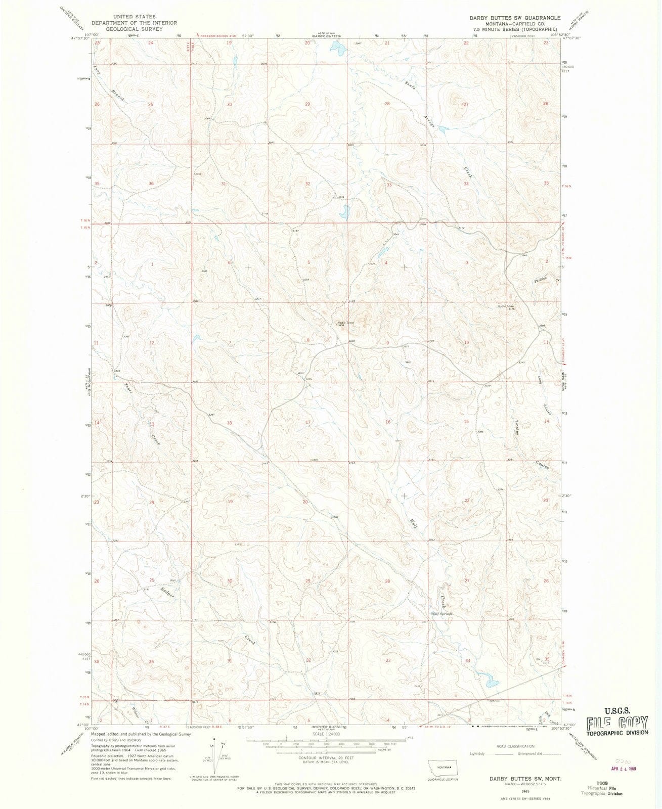 1965 Darby Buttes, MT - Montana - USGS Topographic Map