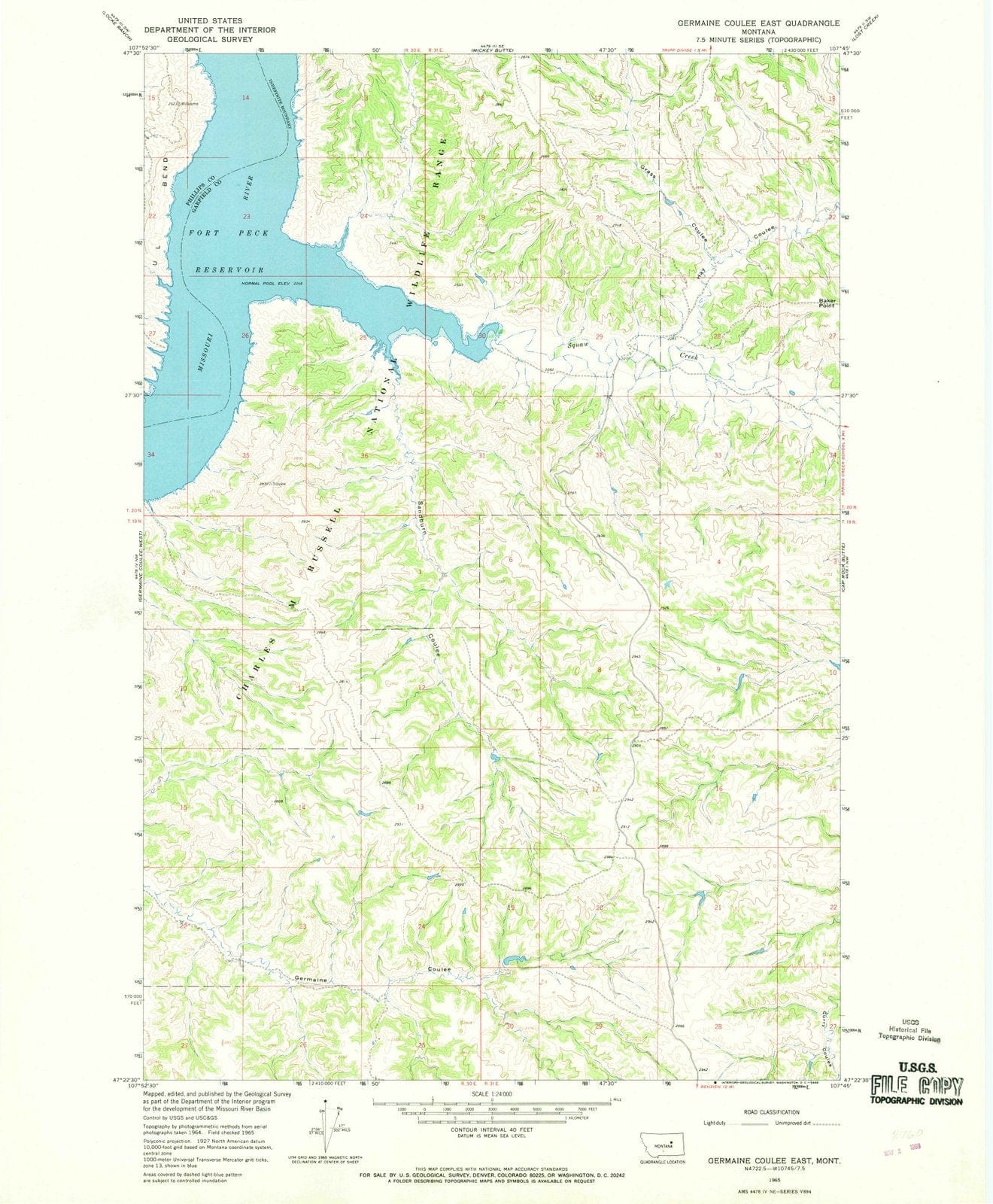 1965 Germaine Coulee East, MT - Montana - USGS Topographic Map