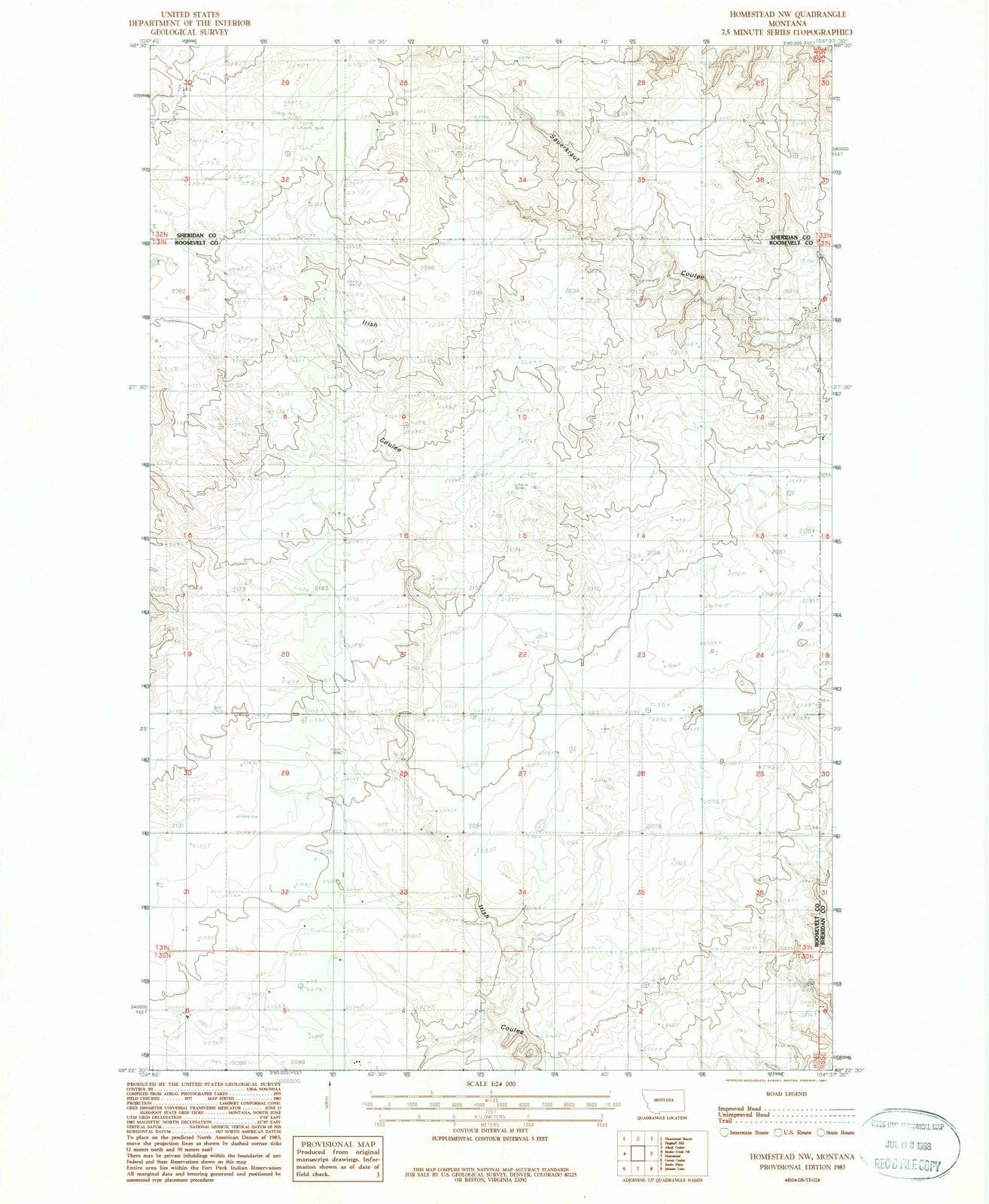 1983 Homestead, MT - Montana - USGS Topographic Map