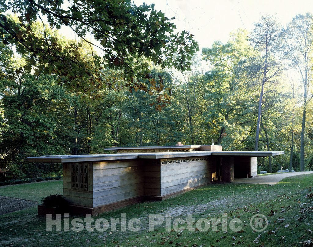 The Pope-Leighey House. This "Usonian" house was developed by Wright as a means of providing affordable housing for people of moderate means. Many innovative concepts, including spacious interiors, corner windows and a cantilevered roof, began here and were quickly adapted across America. Today the house can be viewed as an origin of ideas that have influenced modern American homes. In 1965 the house was relocated to the grounds of Woodlawn Plantation, removing it from the path of a highway project. Owned and operated by the National Trust for Historic Preservation.