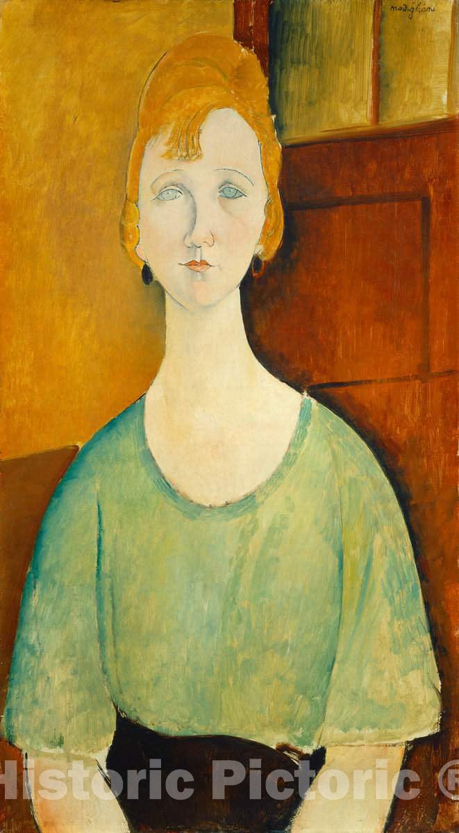 Art Print : Amedeo Modigliani, Girl in a Green Blouse, 1917 - Vintage Wall Art