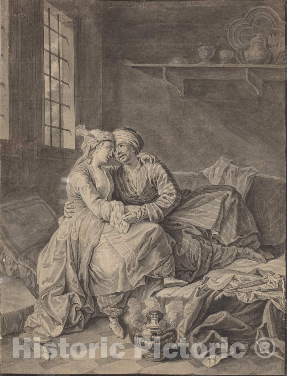 Art Print : Anton Weiss, Oriental Lovers [Verso], 1764 - Vintage Wall Art
