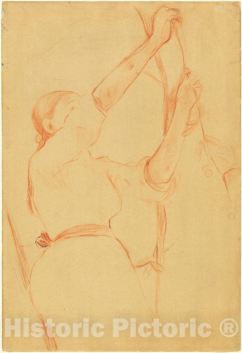 Artist: Berthe Morisot | Drawing: Girl Picking Cherries | Original Medium: red chalk with stumping on light brown paper