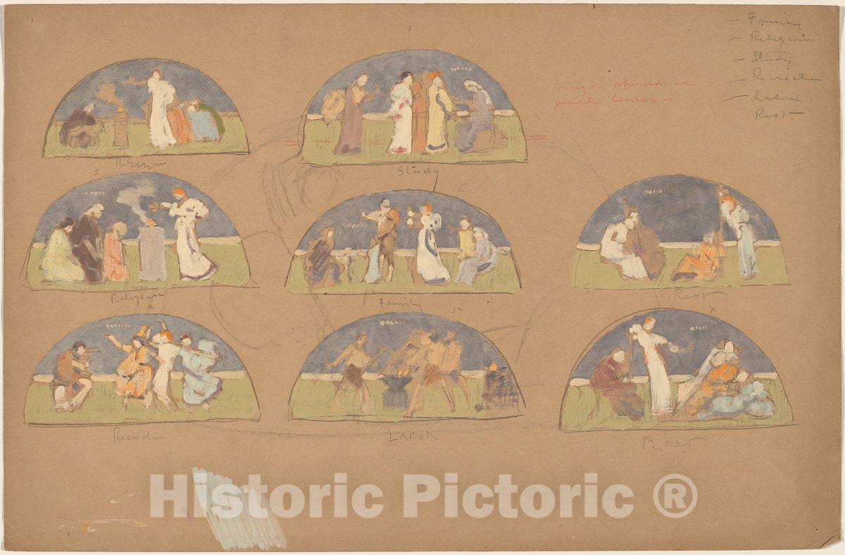 Art Print : Charles Sprague Pearce, Studies for Lunettes, c.1894 - Vintage Wall Art