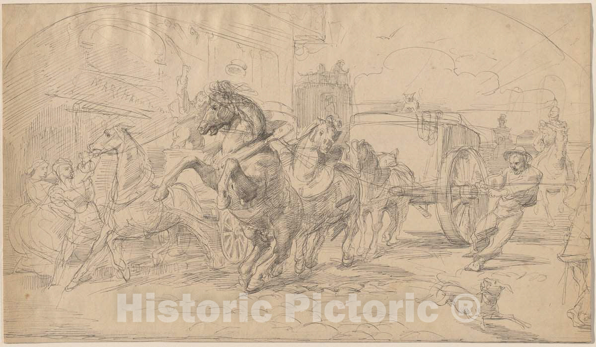 Art Print : Circle of Eugène Delacroix, The Runaway Carriage, 1830s - Vintage Wall Art