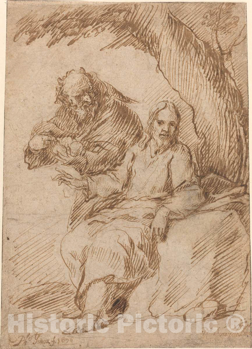 Artist: Felipe Gomez de Valencia | Drawing: The Temptation of Christ in the Desert | Original Medium: pen and brown ink on laid paper