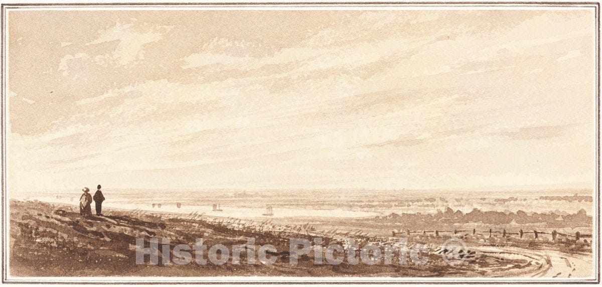 Art Print : Figures Overlooking a Bay Near The Mouth of The Paye, Lincolnshire, 1849 - Vintage Wall Art