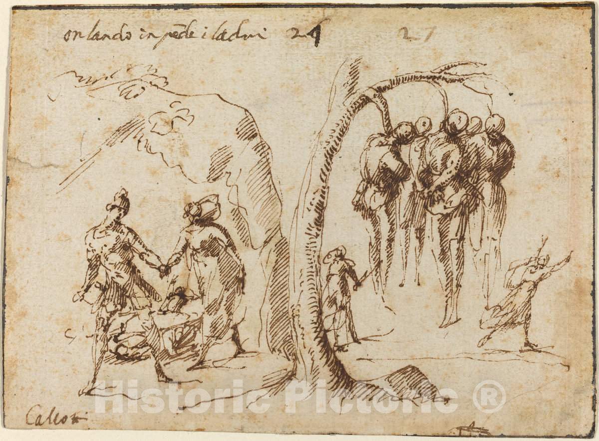 Artist: Francesco Allegrini | Drawing: Orlando and the Thieves | Original Medium: pen and brown ink on laid paper