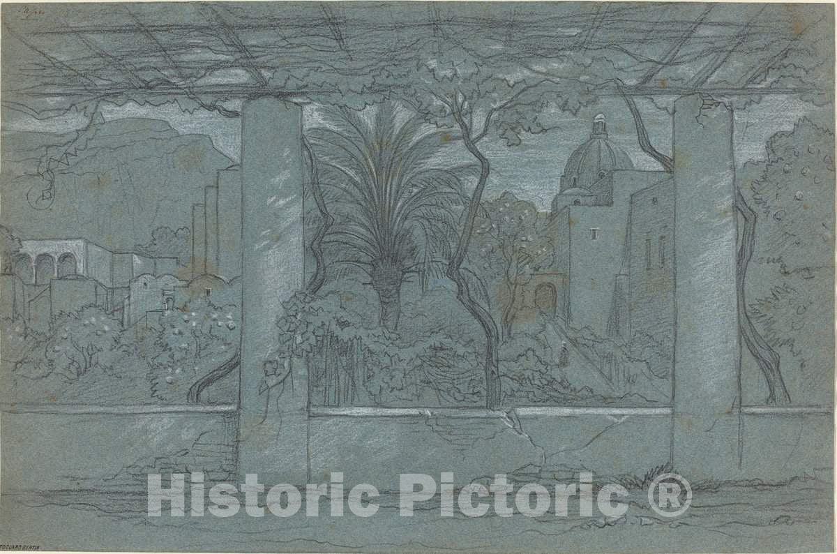 Art Print : François-Édouard Bertin, A Terrace and Garden on Capri [Recto], c. 1822 or Later - Vintage Wall Art