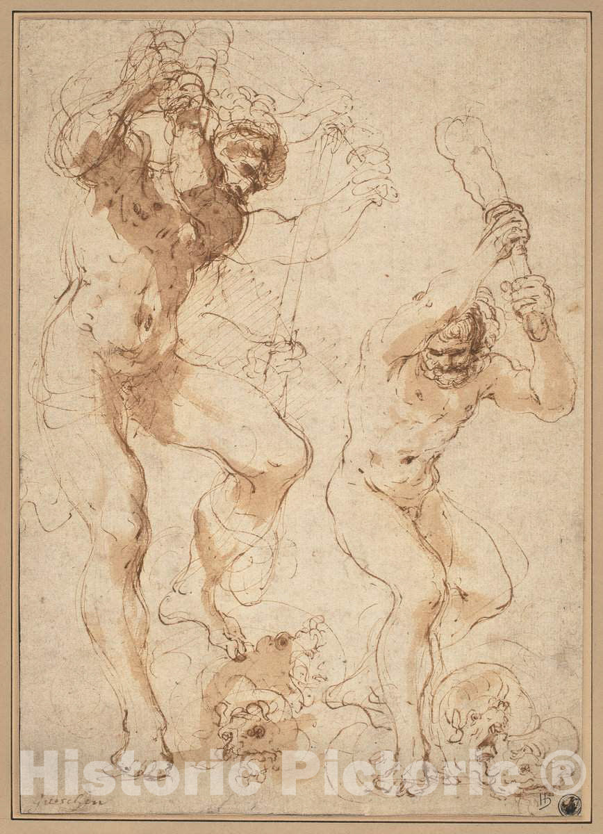 Artist: Giovanni Francesco Barbieri, called Guercino | Drawing: Hercules Slaying the Hydra | Original Medium: pen and brown ink with brown wash