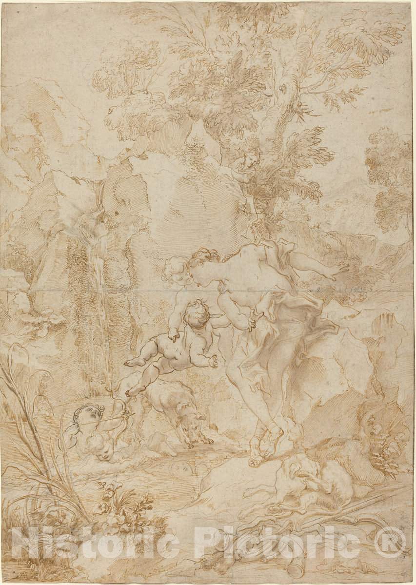 Artist: Gregorio de Ferrari | Drawing: Echo and Narcissus | Original Medium: pen and brown ink and brown wash over black chalk,partly indented with stylus