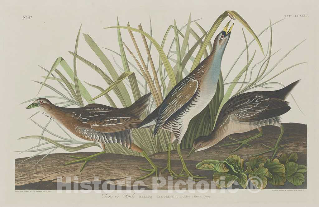 Audubon, Birds of America, Sora or Rail, 1848 : Art Print