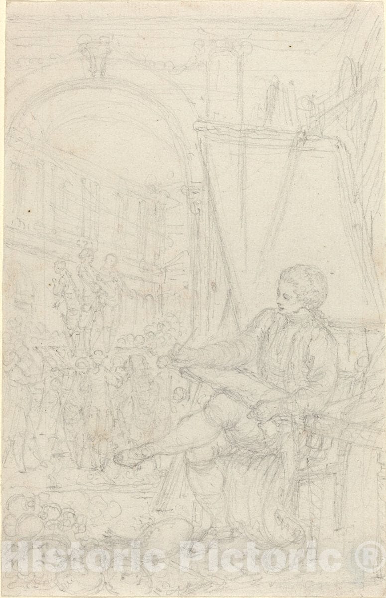 Art Print : Hubert François Gravelot, Self-Portrait, c.1740 - Vintage Wall Art
