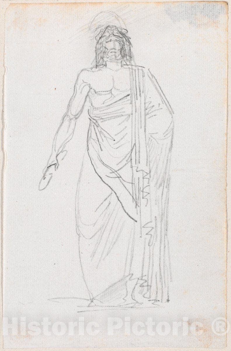 Artist: Hubert Robert | Drawing: Statue of Zeus Holding a Thunderbolt | Original Medium: black chalk on laid paper