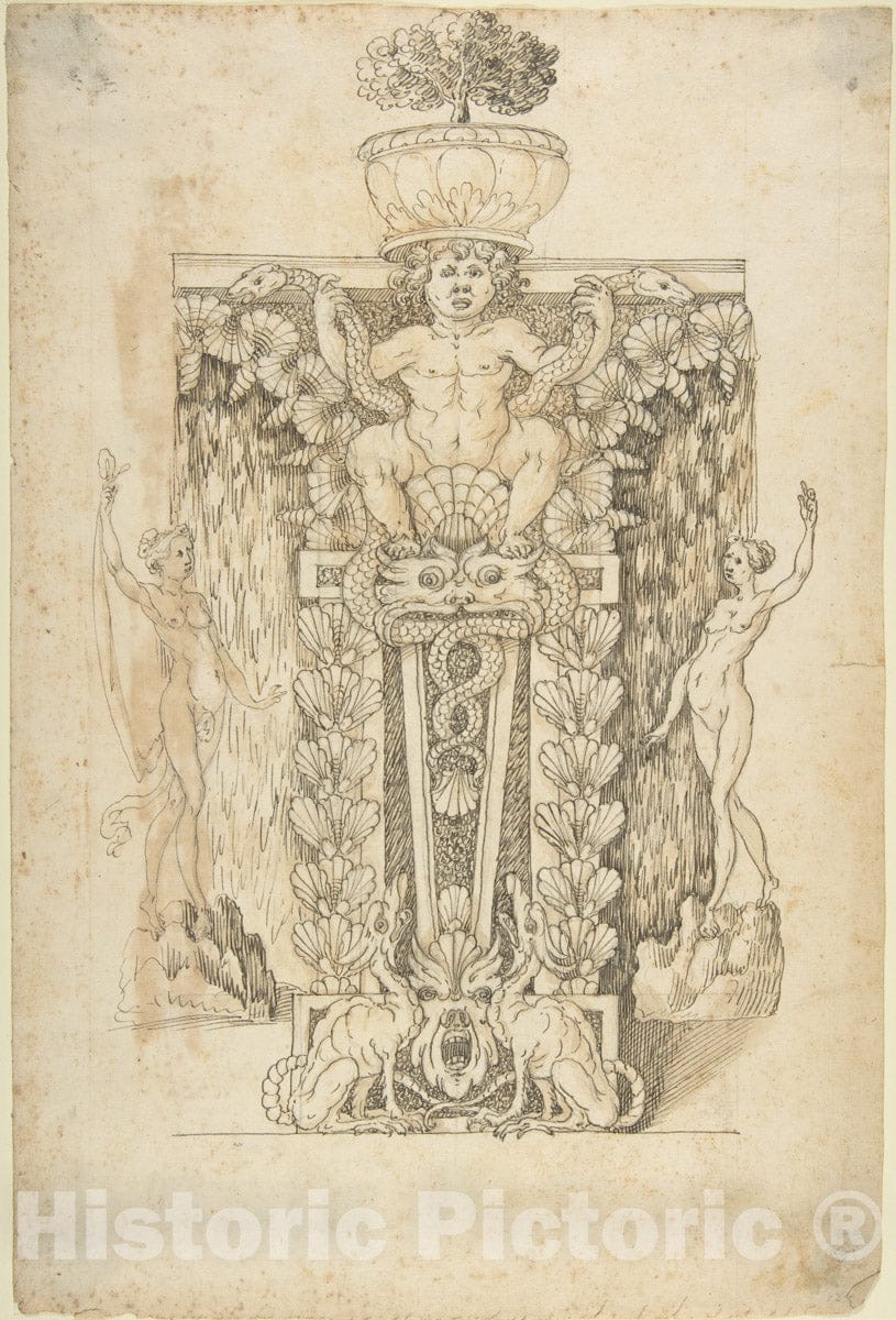 Art Print : Italian, Lombard, 16th Century - Design for a Wall Fountain - 423320 : Vintage Wall Art