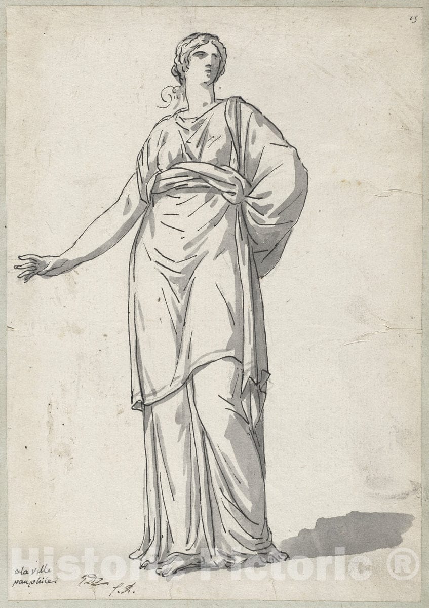 Artist: Jacques-Louis David | Drawing: Woman from the Villa Pamphili | Original Medium: black ink with gray wash over graphite on laid paper