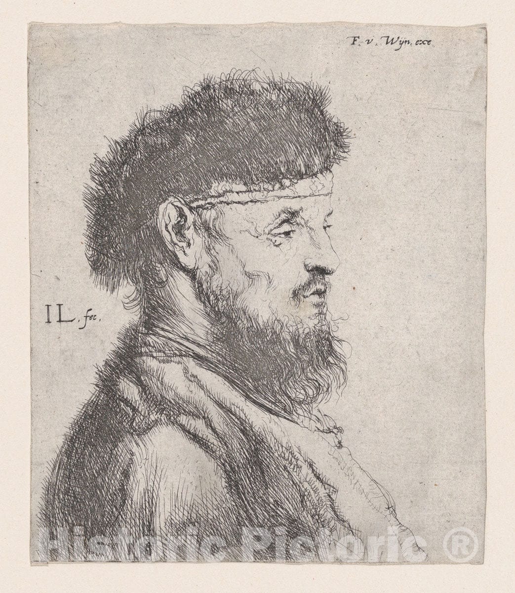 Art Print : Jan Lievens - Bust of a Man with a Fur Cap : Vintage Wall Art