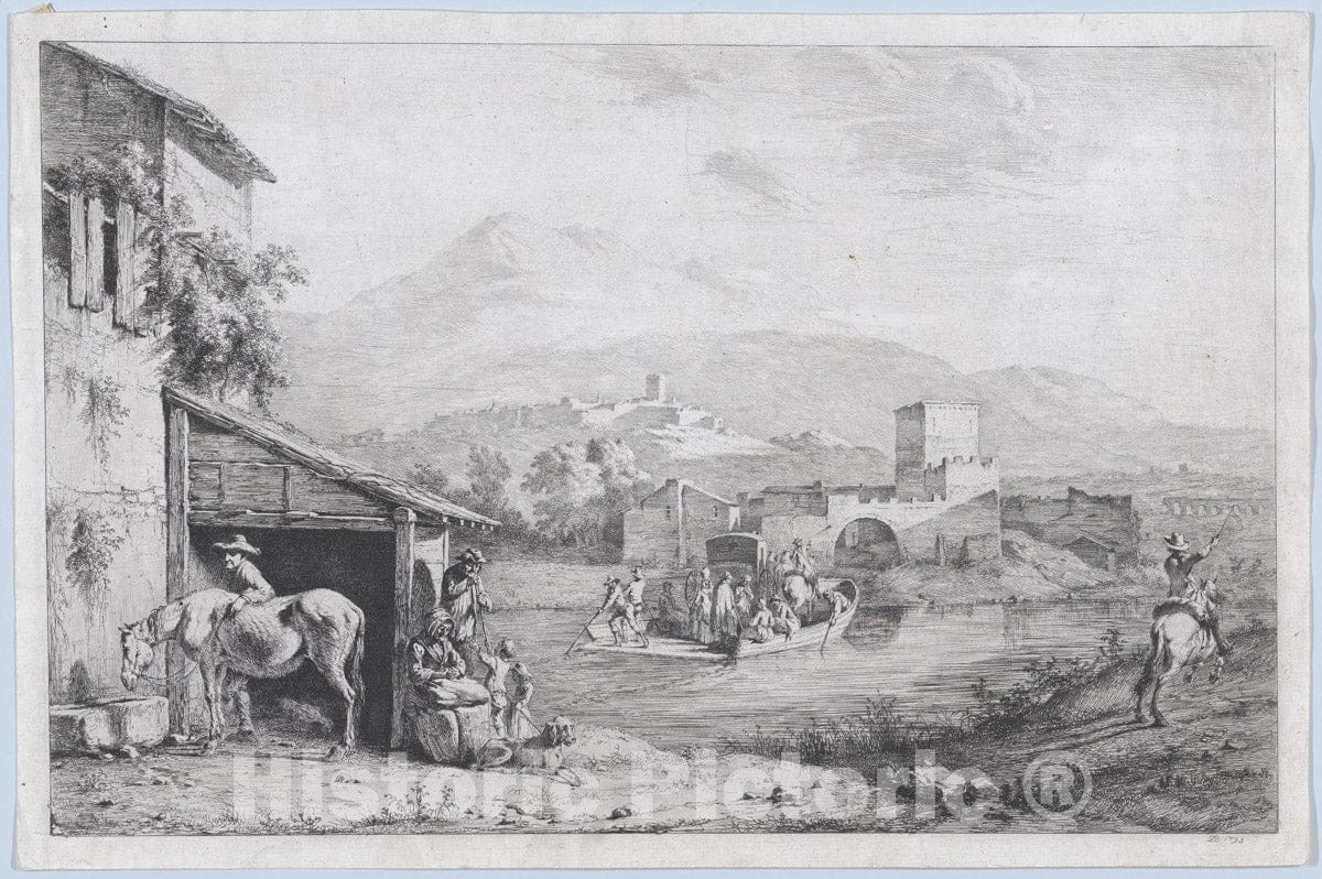 Garigliano Passage (Italy) - French, Lyons 1736-1810 Lyons - Artist Nationality: French - Original Medium, Materials or Technique: Etching and drypoint with roulette; fifth state of five