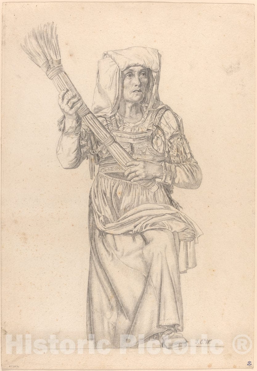 Art Print : Johann Caspar Weidenmann, Italian Peasant Woman with a Broom - Vintage Wall Art