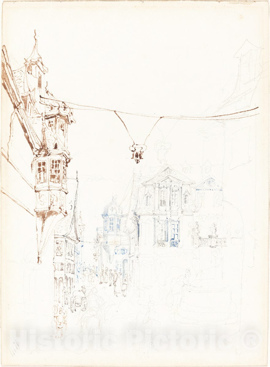 Art Print : John Skinner Prout, Continental Street Scene, c.1865 - Vintage Wall Art