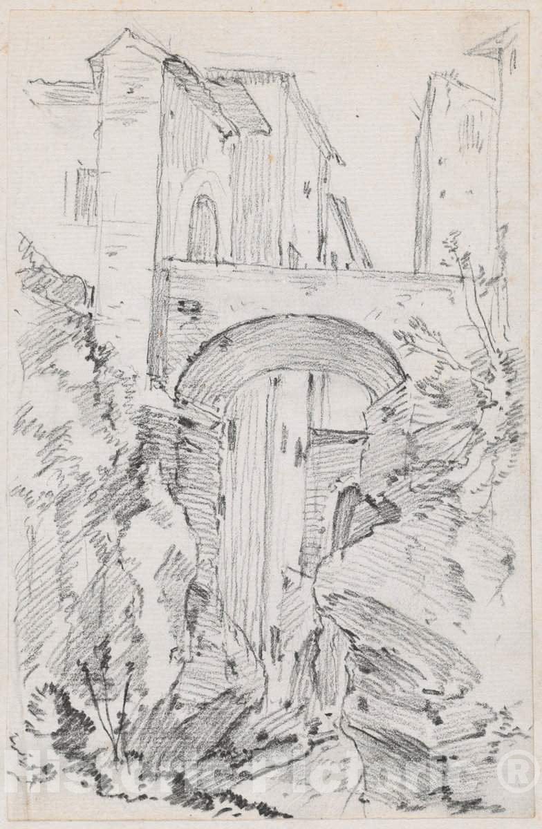 Artist: Joseph-Marie Vien | Drawing: A High Bridge in Tivoli | Original Medium: graphite on laid paper