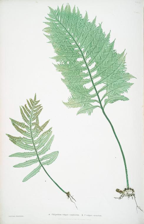 Art Print : A. Lastrea Filix-mas pumila. B. L. Filix-mas paleacea. [The Male Fern, or Common Buckler Fern], 1831 - Vintage Wall Art