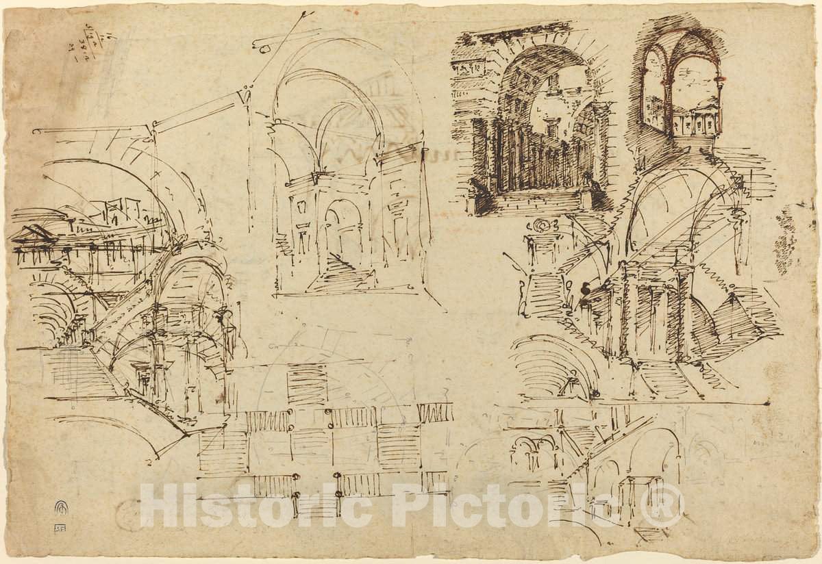 Art Print : Lorenzo Sacchetti, Designs for Palatial Staircases [Recto], c. 1800 - Vintage Wall Art