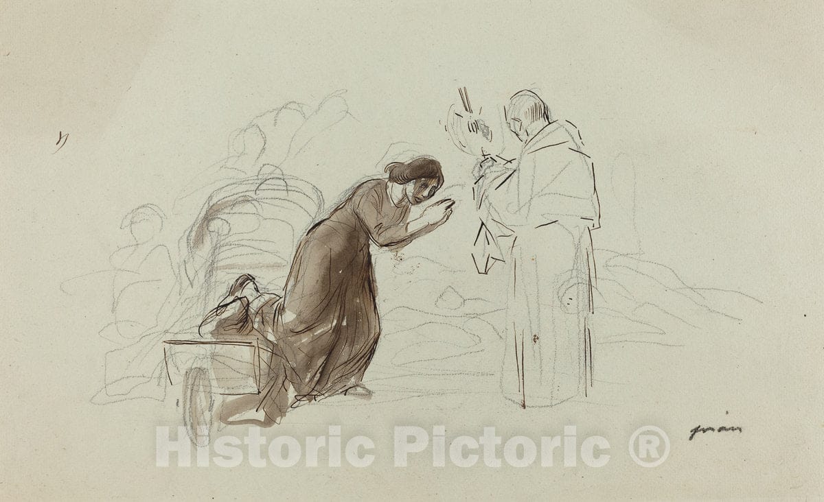 Artist: Jean-Louis Forain | Drawing: Benediction a Lourdes | Original Medium: pen and brown ink with brown wash over graphite onlaid paper