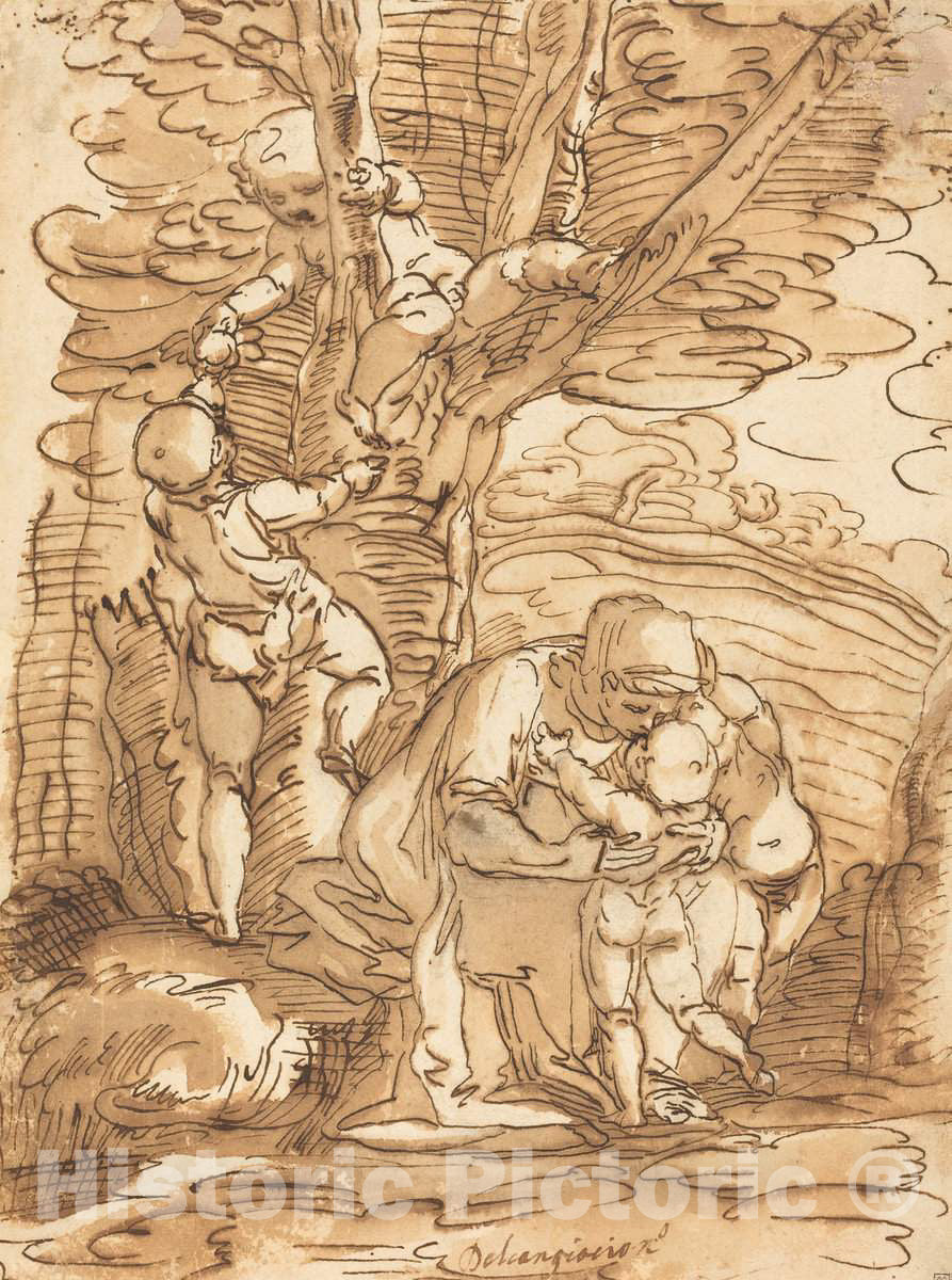 Artist: Follower of Luca Cambiaso | Drawing: Charity | Original Medium: pen and brown ink with brown wash over traces of black chalk on laid paper