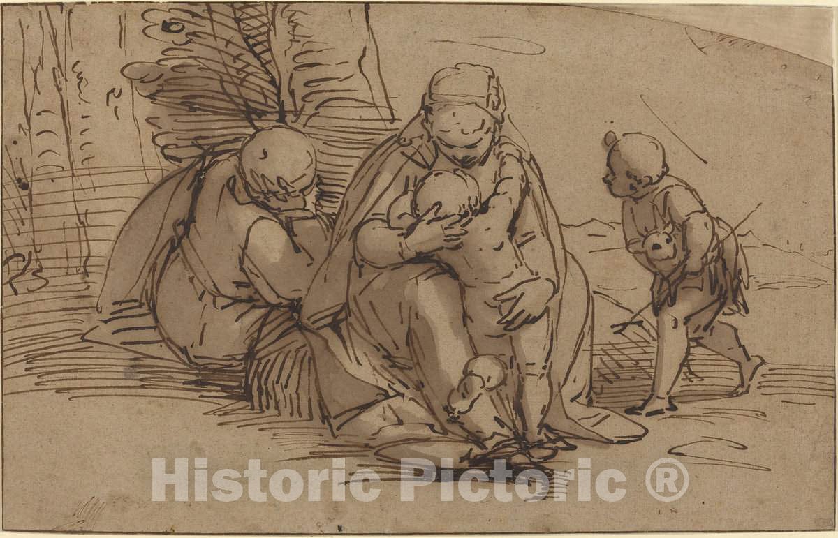 Artist: Luca Cambiaso | Drawing: Holy Family with Infant Saint John | Original Medium: pen and brown ink with brown wash on brown paper