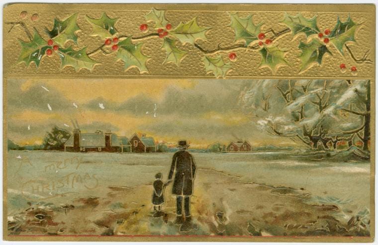 Art Print : A Merry Christmas, Father and Child - Vintage Wall Art
