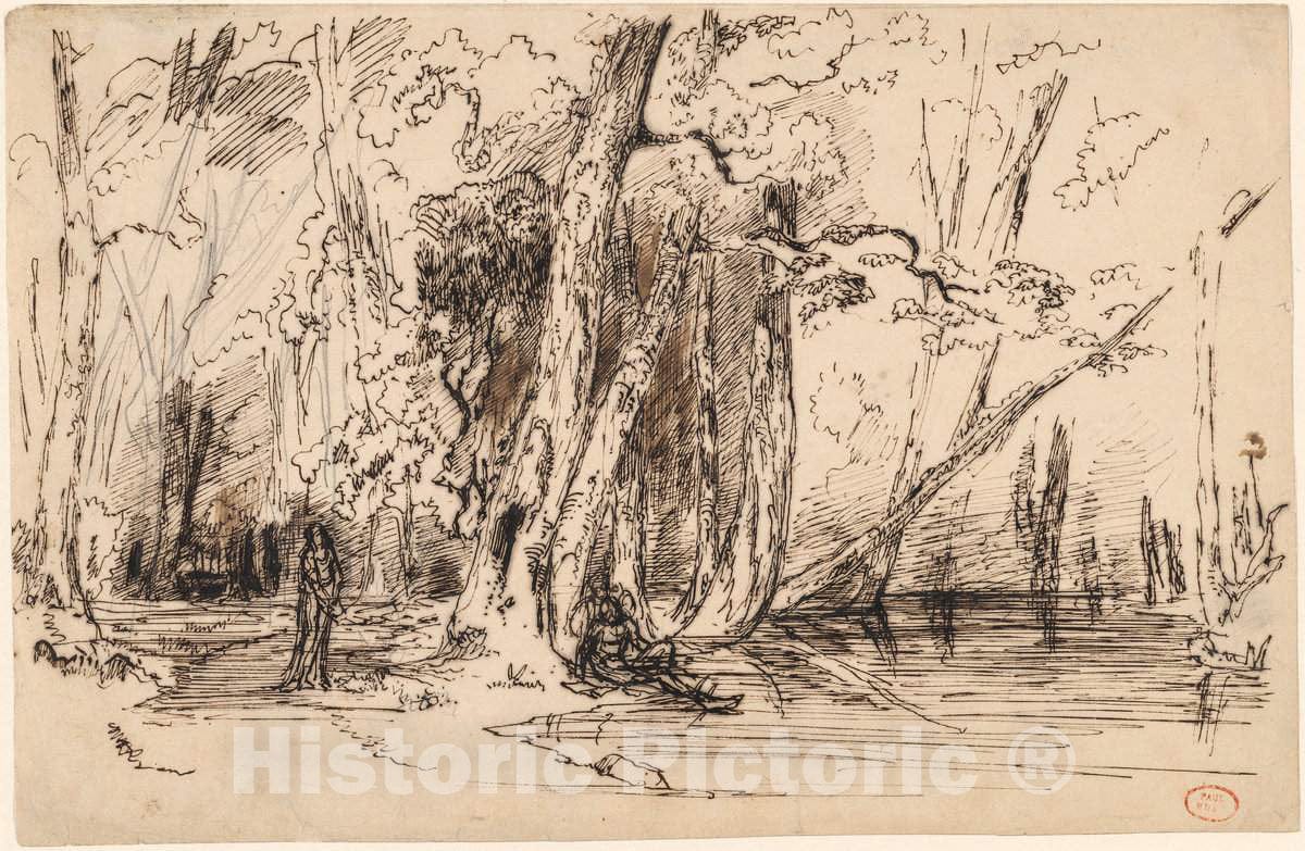 Art Print : Paul Huet, Flooding in The Forest of The ILE Séguin, c. 1833 - Vintage Wall Art