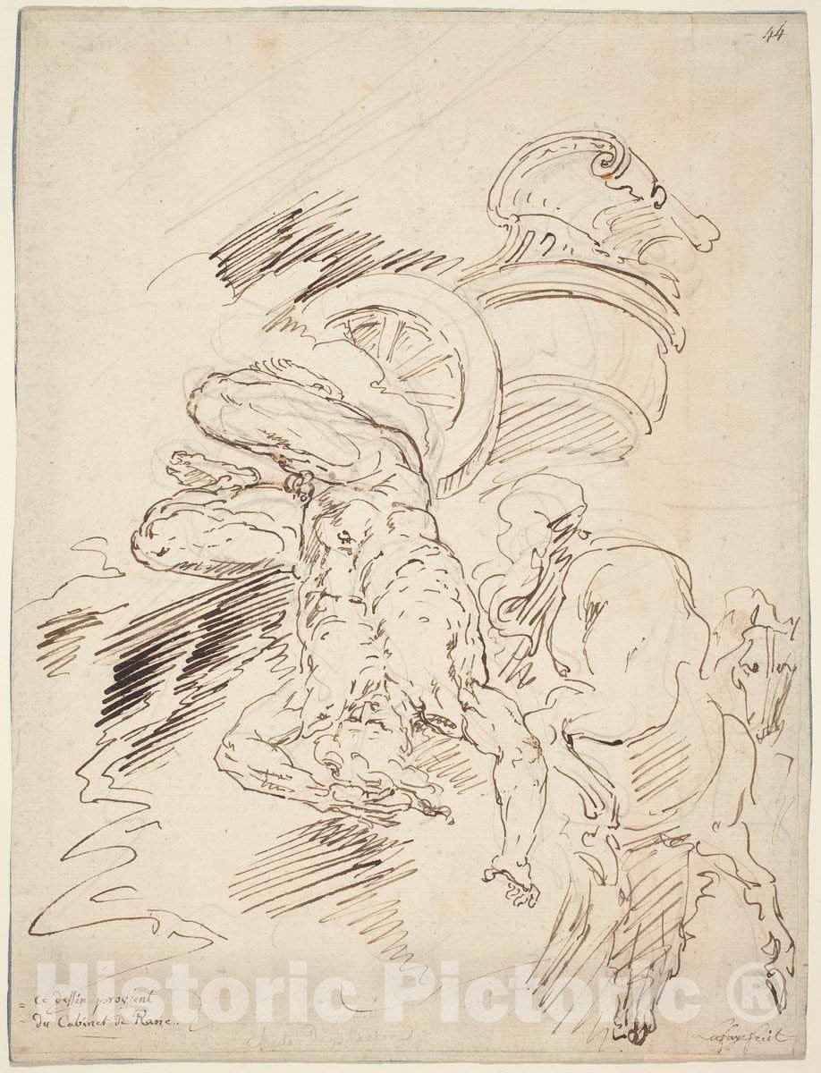 Artist: Raymond Lafage | Drawing: The Fall of Phaeton | Original Medium: pen and brown ink over graphite on laid paper