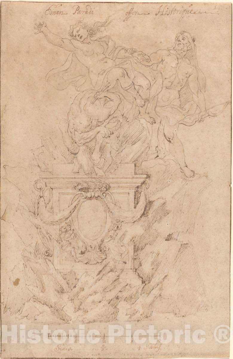 Artist: Austrian 18th Century | Drawing: The Rescue of Deianeira | Original Medium: pen and brown ink with brown wash over black chalk on laid paper