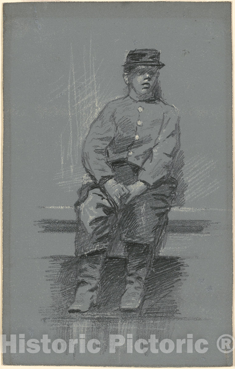Artist: Robert William Vonnoh | Drawing: The Cadet | Original Medium: graphite with scratched highlights on blue-gray prepared wove paper