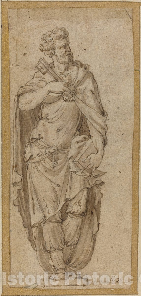 Artist: after Francesco Salviati | Drawing: Saint Peter | Original Medium: pen and brown ink with brown wash
