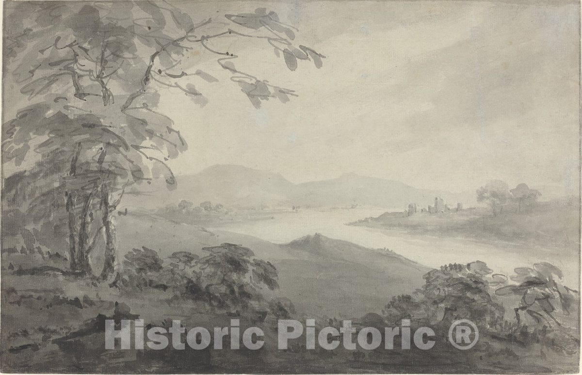 Art Print : William Gilpin, River Landscape with Ruins, 1770s - Vintage Wall Art