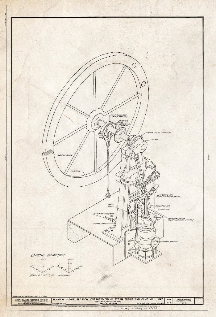 Blueprint Engine Isometric - Estate Whim, Overhead Crank Steam Engine & Cane Mill, Westend Quarter, Centerline Road, Frederiksted, St. Croix, VI