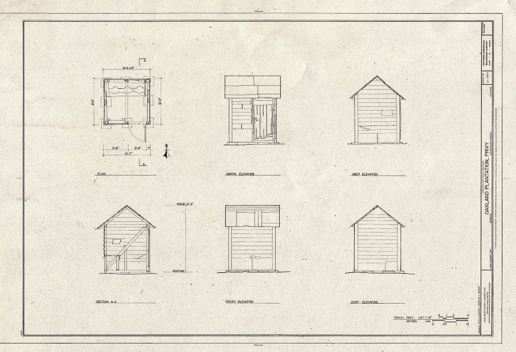 Blueprint HABS LA-1192-R (Sheet 1 of 1) - Oakland Plantation, Privy, Route 494, Bermuda, Natchitoches Parish, LA